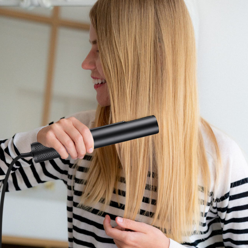 Experience salon-quality styling at home with the ELLE High-Speed Ion Neutralizing Hair Dryer. Powered by a brushless motor operating at 110,000 RPM, this advanced dryer delivers a smooth 22 m/s airflow for instant drying and professional results. Designed with plasma de-static ion technology, it helps neutralize frizz and leaves hair sleek, shiny, and manageable. The quiet motor ensures comfortable use, making it perfect for early mornings or late-night styling. With 3 adjustable speed settings and 4 temperature options, you can customize your drying experience for any hair type or style. The 1200W power output provides ultra-fast performance, while the extra-long 9 ft professional cord offers freedom of movement for effortless styling. Combining high-performance technology with a sleek, modern design, the ELLE High-Speed Ion Neutralizing Hair Dryer is the ultimate tool for achieving smooth, polished hair every day.
